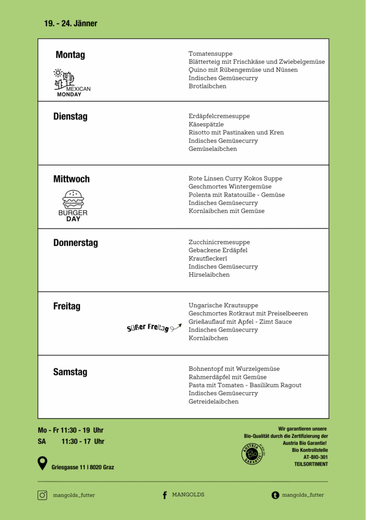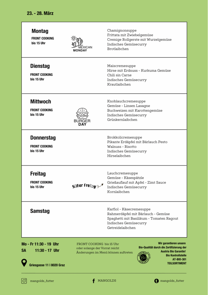 Willkommen im MANGOLDS, wo Nachhaltigkeit, Geschmack und Gemeinschaft im Mittelpunkt stehen. Wir kochen am liebsten frisch, bio und vollwertig – natürlich veggie & vegan. Wähle aus über 40 Salaten, gestalte deine kreative Bowl mit pflanzlichen Proteinen oder geniesse hausgemachte Süßspeisen mit fair gehandelten Kaffee. Unser Restaurant verbindet Wohlfühlatmosphäre mit bewusstem Genuss – perfekt für alle, die gutes Essen lieben und dabei Wert auf Nachhaltigkeit legen.