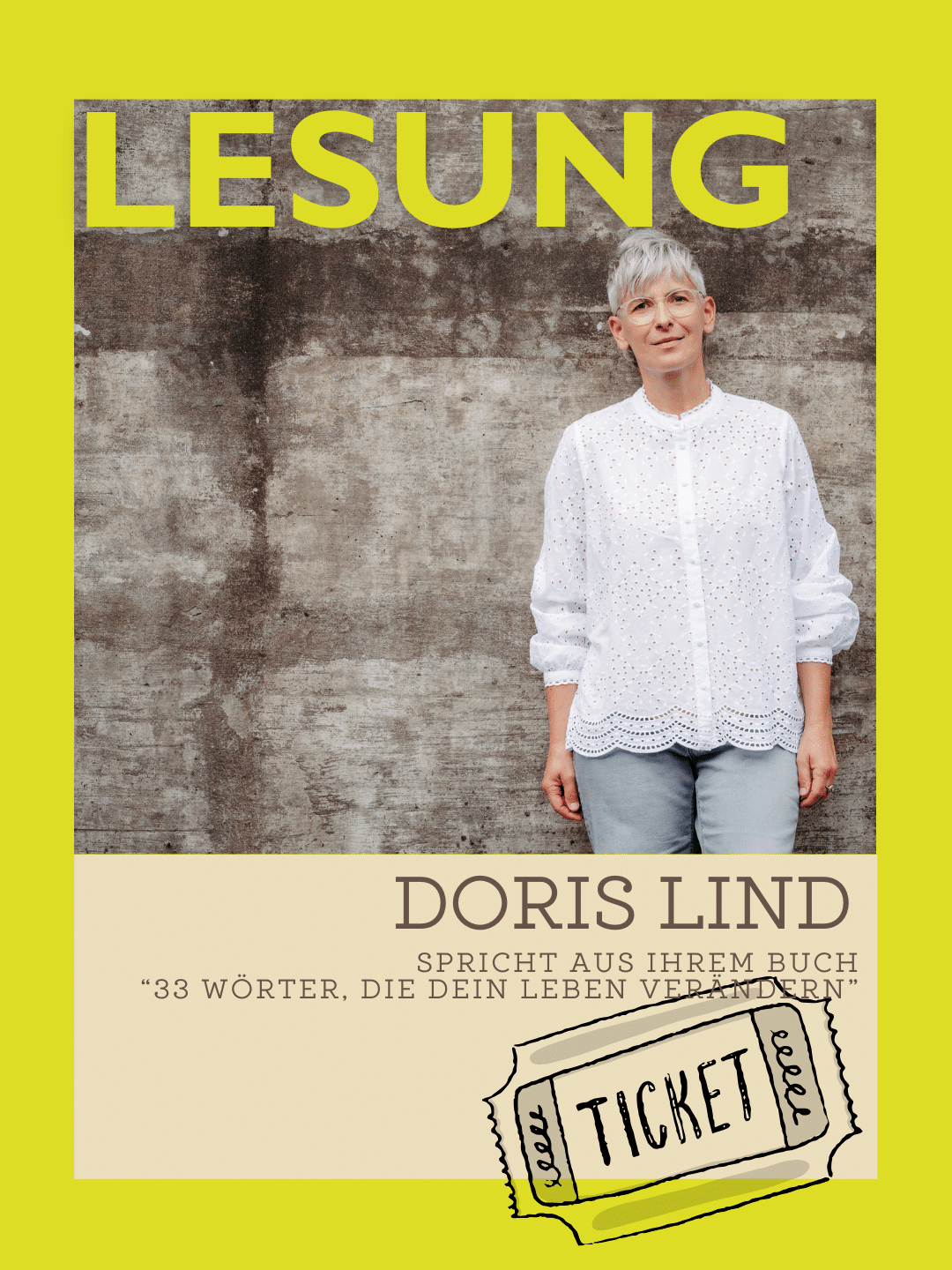 Ticket zur Lesung: Doris Lind spricht aus ihrem Buch “33 Wörter die dein Leben verändern”